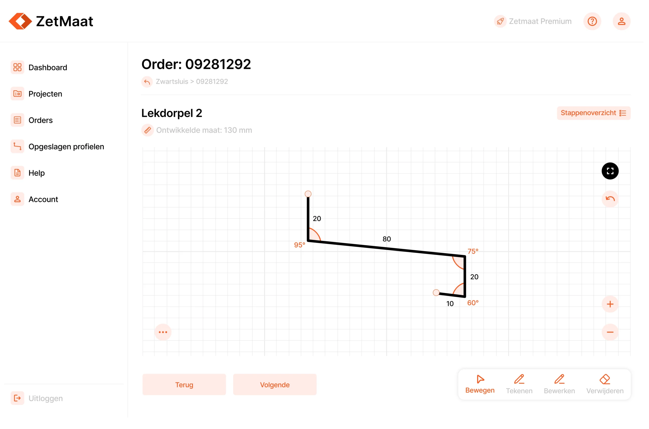 Met ZetMaat slaat u getekende zetwerkprofielen eenvoudig op, zodat u deze bij nieuwe orders direct opnieuw kunt gebruiken. Ideaal voor standaardprofielen en terugkerend werk.